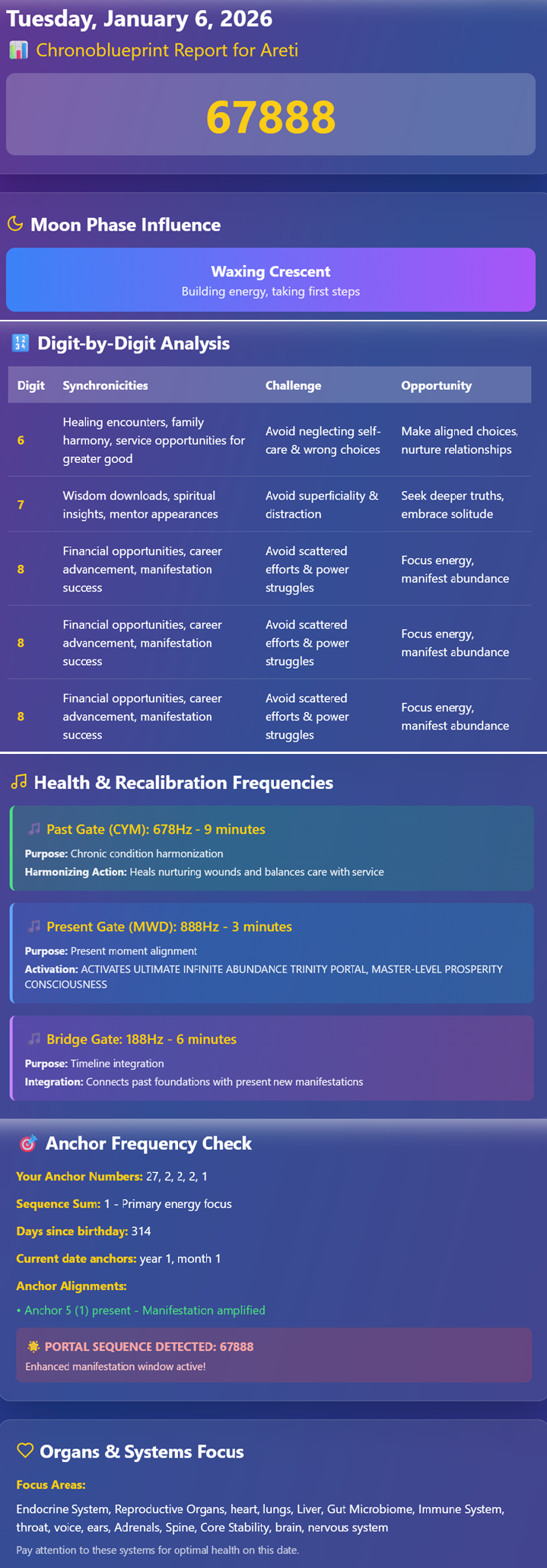 Through your timing blueprint, synchronicity mapping, and daily recalibration practices, the system harmonises your chronic patterns, present state, and transformation zone. You stop living in fragmented time and step into multidimensional alignment, where clarity increases, energy stabilises, and your future unfolds by design, not by accident.